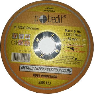 Круг отрезной по металлу Pobedit 5501123 отличается повышенным ресурсом. Высокая скорость реза и продолжительность жизни круга по металлу Pobedit 5501123 достигается за счет высокого качества абразивов.