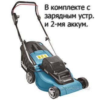 Аккумуляторная газонокосилка Makita DLM380Z очень удобна в работе ввиду того, что нет необходимости путаться с электрическими удлинителями для того, чтобы запитать двигатель от сети 220 вольт так как питается газонокосилка Makita DLM380Z от двух литий-ионных аккумуляторов 18 В. Газонокосилка Makita DLM380Z укомплектована зарядным устройством и двумя аккумуляторами ёмкостью 5 а/ч, а это значит, что можно сразу приступить к облагораживанию газонной травы. Ну и как в случае с бензиновыми агрегатами у аккумуляторной газонокосилки Makita DLM380Z отпадает необходимость возиться с бензином и маслом.