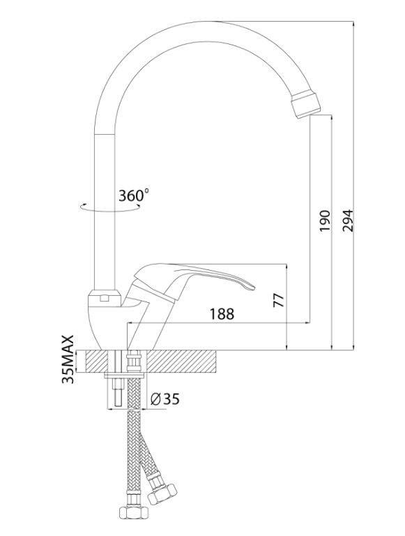 - Диаметр отверстия в мойке 35 мм
