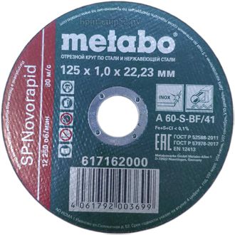 Отрезной круг METABO 617162000 125х1,0х22,23мм обладает высокой производительностью и большим ресурсом. Предназначен для работы со шлифмашинами. Применяется для резки нержавеющей стали, проволоки, арматуры, профиля, листового металла и т.п.