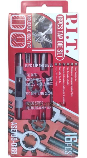 Набор для нарезания метрических резьб P.I.T. ASET09-016B включает в себя 16 предметов.