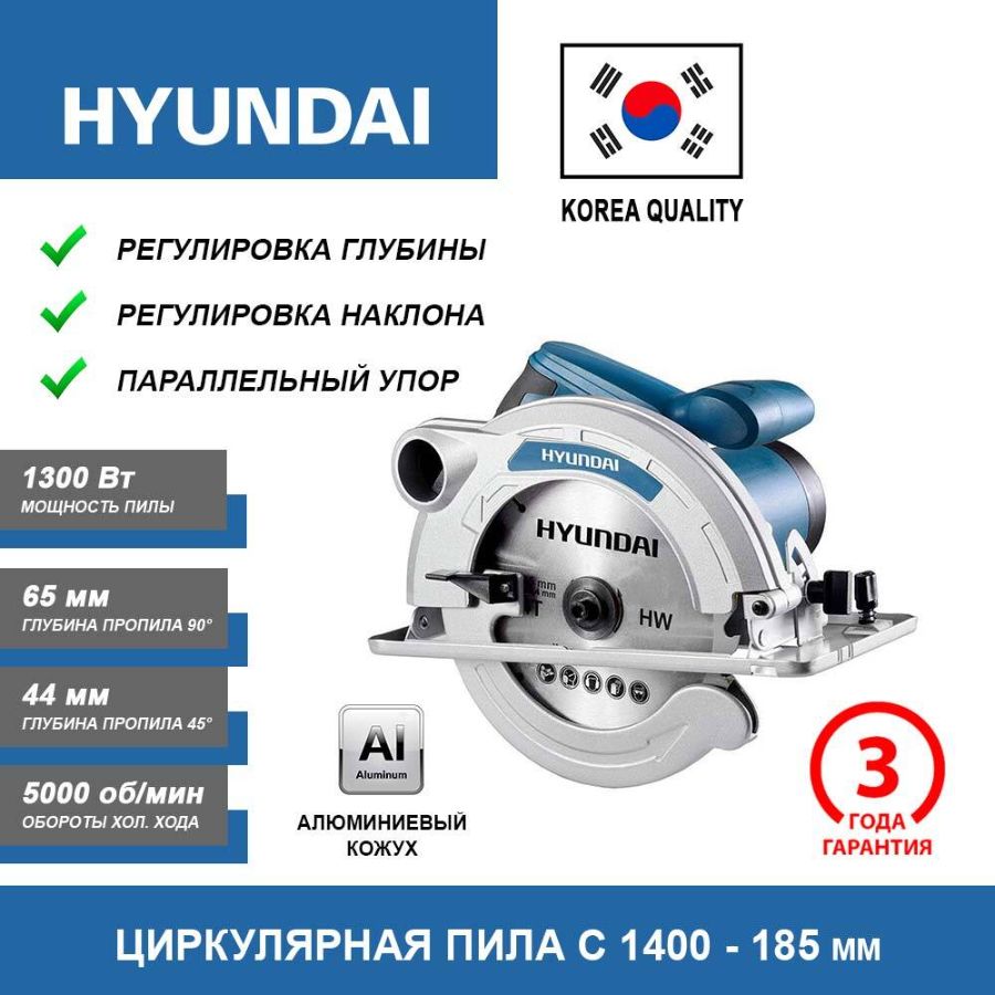 Циркулярная пила HYUNDAI C 1400-185 используется для продольной и поперечной распиловки досок, брусков и разных заготовок из древесины. Мощный двигатель с высокой частотой вращения гарантирует отличную производительность. Наличие отвода для пыли и опилок обеспечивает лучшую видимость линии реза. Специальный кожух защищает пользователя от искр и травм в процессе работы. Для безопасности кнопка пуска оснащена блокировкой от случайного включения.