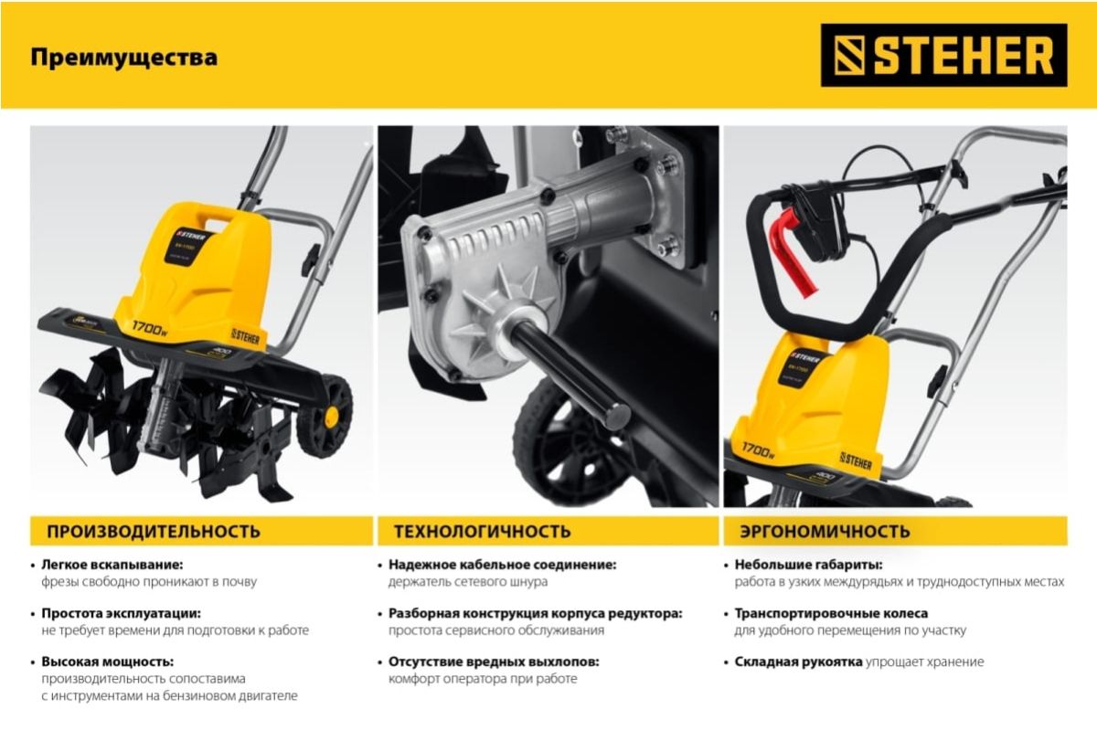 Культиватор электрический STEHER EK-800, предназначен для рыхления и культивации почвы на приусадебном участке. Благодаря малому весу с агрегатом могут работать женщины и пожилые люди. На корпусе предусмотрен щиток, который защищает оператора от попадания земли. Закаленные фрезы прекрасно закапываются на полную глубину и способствуют продвижению культиватора вперед. Идеальный вариант для культивирования земли в теплице.