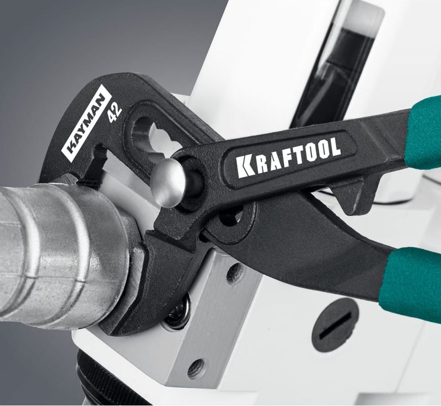 Профессиональные переставные клещи применяются для фиксирования, монтирования и демонтажа крепежных элементов не имеющих специального рабочего профиля, а также в качестве трубного или разводного ключа в сантехнических и других работах. Переставные клещи KRAFTOOLKAYMAN 22353-18 имеют сверхпрочные губки с закалкой рабочей поверхности 50 HRC и маслобензостойкие рукоятки с противоскользящем покрытием. При общей длине всего 180 мм переставные клещи KRAFTOOLKAYMAN 22353-18 способны производить захват деталей размером до 42 мм.