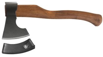 Кованый топор с деревянной рукояткой Ижсталь-ТНП Викинг Премиум 600 г 20725 предназначен для колки дров, рубки мелких деревьев и веток. Голова выкована из инструментальной стали марки 60Г и надежно закреплена на топорище. Рукоятка выполнена из высококачественной древесины, для долгого срока службы она обработана олифой. Для безопасного хранения и транспортировки предусмотрен кожаный чехол.