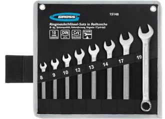 Набор комбинированных ключей GROSS 15148 производятся по технологии холодного штампа из стали CrV. При помощи комбинированных ключей можно закручивать и откручивать гаечные и болтовые соединения. Кольцевой зев каждого ключа имеет 12-гранную рабочую поверхность и крепко удерживает крепеж, не повреждая его. Ключи используются при ремонте автомобилей, сборке техники, монтажных работах, а также будут полезны и в быту.