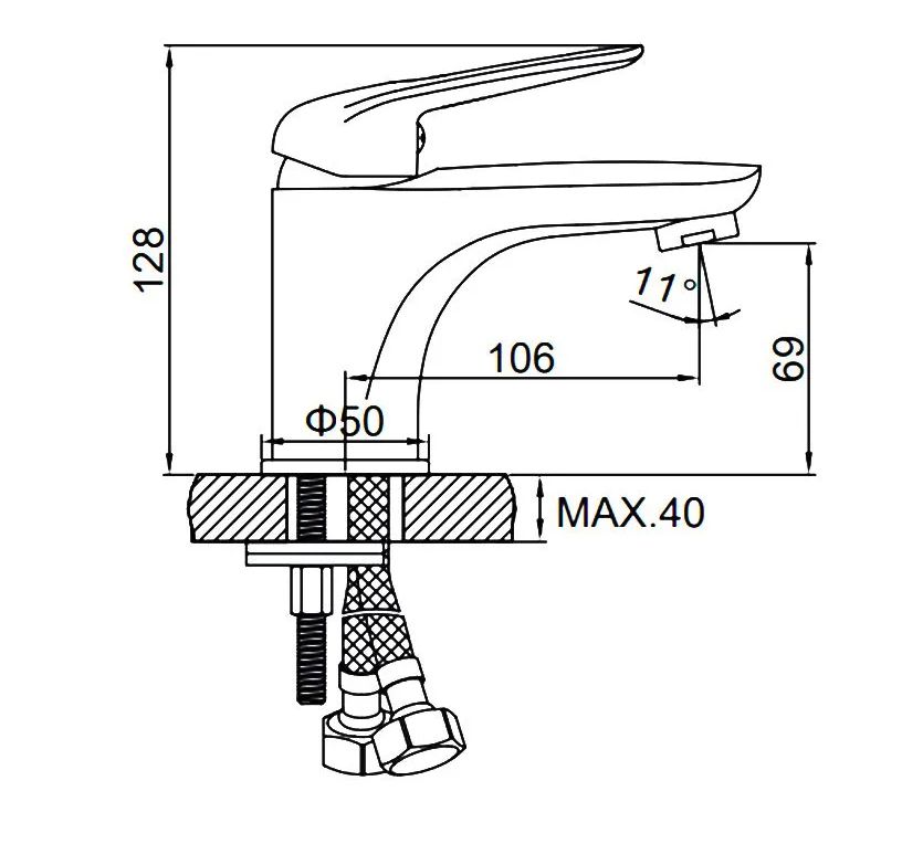 Комплектация: Смеситель, Гибкая подводка 50 см – 2 шт., Крепеж, Ключ пластиковый для монтажа, Паспорт, Коробка.