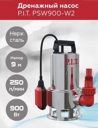 Насос дренажный P.I.T. PSW900-W2 предназначен для перекачивания грязной воды из подтопляемых помещений (подвалов, погребов и т.п.) или выгребных ям. Корпус насоса изготовлен из нержавеющей стали, что защищает насос от ударов и продлевает срок службы. Насос автоматически включается и выключается при достижении определенного уровня воды, благодаря поплавковому выключателю. Насос PSW900-W2 имеет мощность 900 Вт и способен перекачивать до 15000 литров в час.