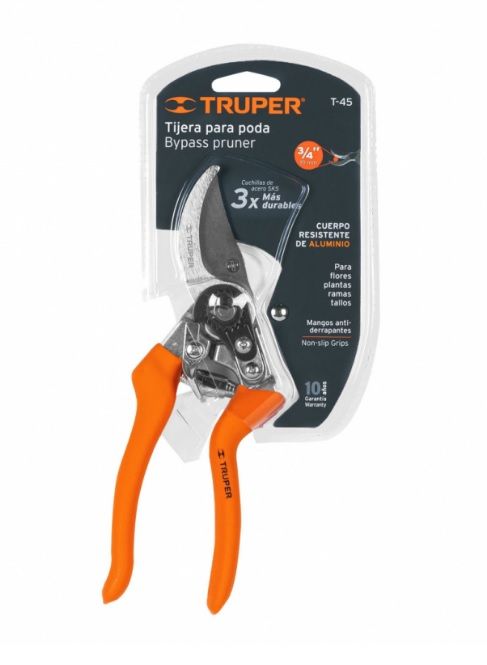 Алюминиевый секатор Truper T-45 18453 предназначен для подрезания веток деревьев, кустов или растений в саду. Основная часть изготовлена из алюминия, который обладает прочностью и стойкостью к коррозии. Рукоятки удобной для работы формы не скользят в руке, снижая нагрузку на кисть. Рабочая часть секатора Truper T-45 18453 изготовлена из стали SK5 - легкого и прочного материала, не подверженного коррозии.