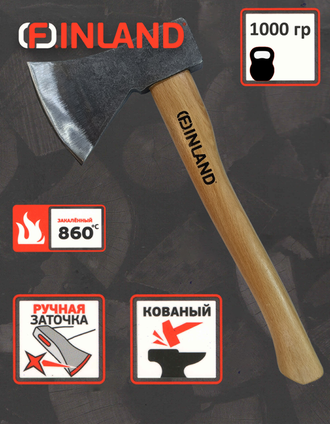 Топор FINLAND 1722-1000 кованый с топорищем из натурального ясеня и головой топора весом 1000гр. - это инструмент высочайшего качества, профессионального класса. Изготовлен из прочной углеродистой стали марки 45, что гарантирует его долговечность, прочность и надежность. Идеально подойдет для самых разнообразных рубочных, строительных и ремонтных работ. Прочное топорище из ясеня с расширением в месте захвата обеспечивает уверенность в работе и безопасность, вероятность выскальзывания сводится к минимуму. Характеристики топора: Рабочая часть — углеродистая сталь 45, Кованый, Закалённая рабочая поверхность, Твердость лезвия 55 HRC, Ручная заточка лезвия, Топорище из ясеня покрытое лаком, Защита от загрязнений и влаги, Общий вес 1300 гр.