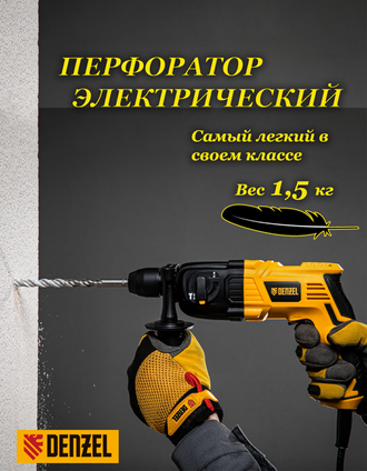 Перфоратор электрический Denzel RH-400-12 26601 отличается компактностью и малым весом в 1,5 кг, что позволяет производить работы одной рукой, например, когда нужно произвести сверление на вытянутой руке в труднодоступном месте или при проведении работ со стремянки. Перфоратор обладает мощность 400 Вт, патроном SDS-Plus, реверсом, электронном регулировкой оборов и 2-мя режимами работы (сверление и сверление с ударом). В комплекте поставляется ограничитель глубины сверления, благодаря которому отверстия будут необходимой глубины, а также исключает риск проделывания отверстия «на вылет» там, где это категорически не нужно. Способен сверлить бетон диаметром до 12 мм, древесину 20 мм и металл 13 мм. Является альтернативой ударной дрели: такой же компактный, но благодаря вакуумно-компрессионному механизму не требует дополнительных усилий для сверления и бурения даже бетонных и кирпичных конструкций. Подтвержденное качество — гарантия производителя 3 года.