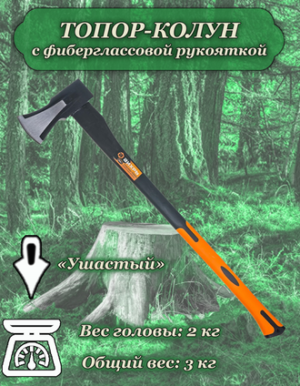 Топор-колун с фиберглассовой рукояткой ВИХРЬ ТК2000Ф легко справится с большими бревнами, сухими, сучковатыми, «поведенными» поленьями. Инструмент обеспечит эффективную и точную колку дров, безопасность и комфортность ручной работы. Топор-колун отличается особой конструкцией. Клиновидная головка с резким расширением обеспечивает плавный вход лезвия в древесину и передачу усилия для быстрого раскалывания древесного материала любого размера. Вес бойка составляет 2 кг, вместе с рукояткой колун имеет общий вес 3 кг. Длина инструмента равна 800 мм, за счет этого можно произвести сильный замах и достичь большего ударного усилия. Топор-колун изготовлен методом свободной ковки из металла повышенной прочности. Это термообработанная инструментальная сталь, твердость которой составляет 48-52HRc. Рукоятка надежно зафиксирована в рабочей части при помощи эпоксидной смолы и выполнена из фибергласса. Этот стекловолокнистый материал отличается особой износоустойчивостью и высокой прочностью. Он не подвержен воздействиям внешней среды, не склонен к рассыханию, набуханию, деформации. Фиберглассовая рукоятка имеет эргономичную форму и отлично амортизирует удар, обеспечивая безопасность пользователя. Топор-колун ВИХРЬ ТК2000Ф – это прочная, надежная, долговечная, удобная в работе модель, которая поможет с раскалыванием больших бревен, колкой дров, пригодится на даче и других рабочих объектах.