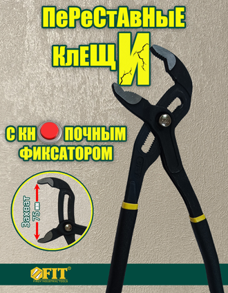 Клещи переставные с фиксатором 250мм кнопочные FIT 70657 используются для различных видов работ с деталями круглого, квадратного и шестигранного профиля. Данный инструмент характеризуется надежностью, мощностью, компактностью, большим зевом и большим комфортом в применении, по сравнению с обычными трубными газовыми ключами. Настройку расстояния между губок можно производить на самой детали, что позволяет точно подогнать нужный размер.Предназначены для закручивания и откручивания резьбовых гаек, трубных резьбовых соединений и фитингов при монтаже отопительных и водопроводных систем, обслуживания и ремонта отопительных котлов и кондиционеров, удержания различных деталей и заготовок во время обработки, гибки или правки листовых материалов, а также могут быть использованы в качестве ручных тисков. В ряде работ заменяют трубный или разводной ключ, а также могут заменить целый набор рожковых ключей. Клещи переставные с кнопочным фиксатором изготовлены из закаленной хром-ванадиевой инструментальной стали Cr-V с антикоррозийным фосфатированным покрытием. Надежный реечный механизм регулировки с кнопочным двухсторонним фиксатором позволяет быстро и удобно подобрать нужную ширину захвата с минимальным количеством потраченного времени и сил. Насечки на губках максимально надежно фиксируют даже поврежденную гайку или обрабатываемую деталь. Облитые рукоятки с ПВХ покрытием способствуют комфортному удержанию инструмента. Общая длина 250 мм, максимальный размер захвата 75мм, максимальный размер зажима 52 мм.FIT– проверенное Канадское качество!